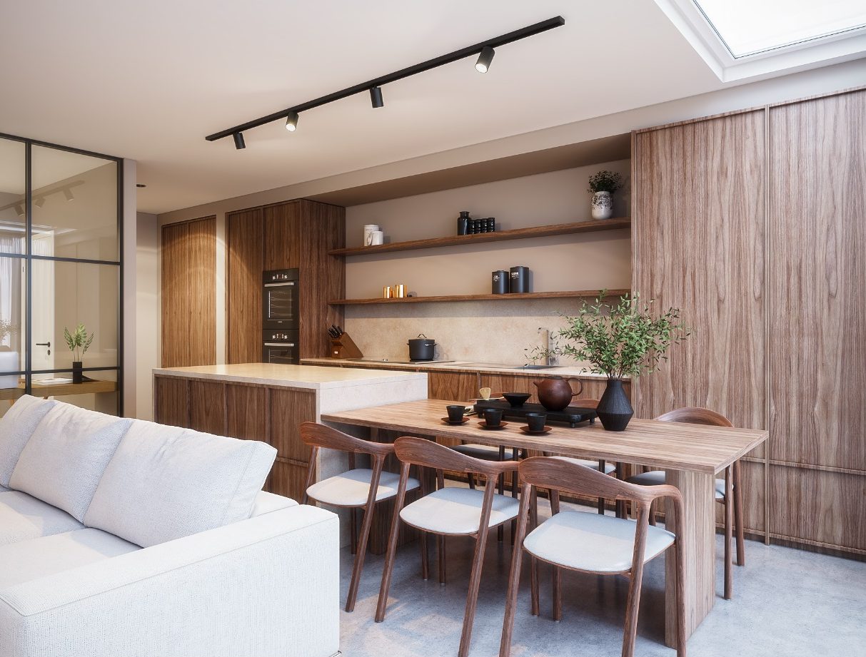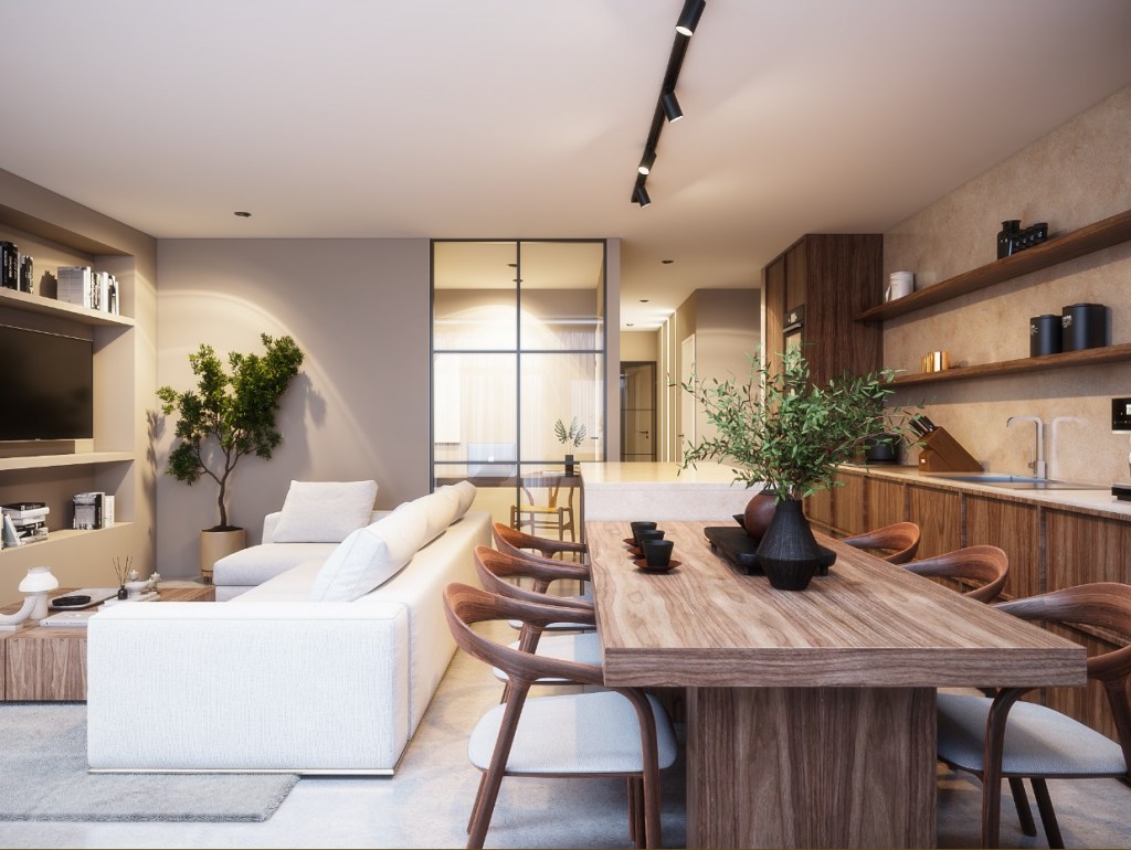 The house was designed for an Australian couple who just recently bought the place, looking nothing like the new design, the house did not count with a second bedroom and a proper bathroom size, I added a 4m extension once accepted by the VVE, a walnut wooden kichen with marble accents and a dining area looking towards the panoramic wall to wall windows.
